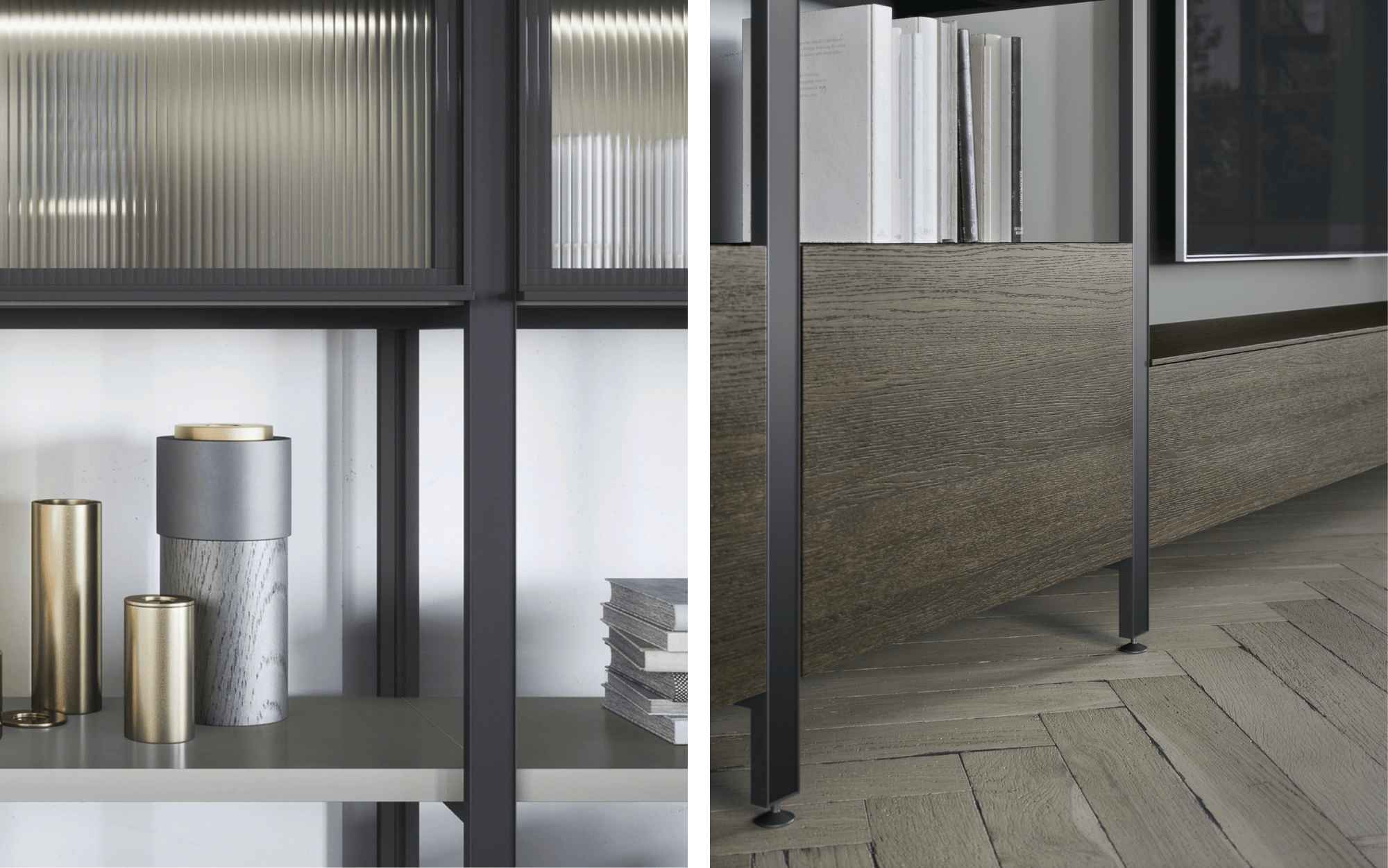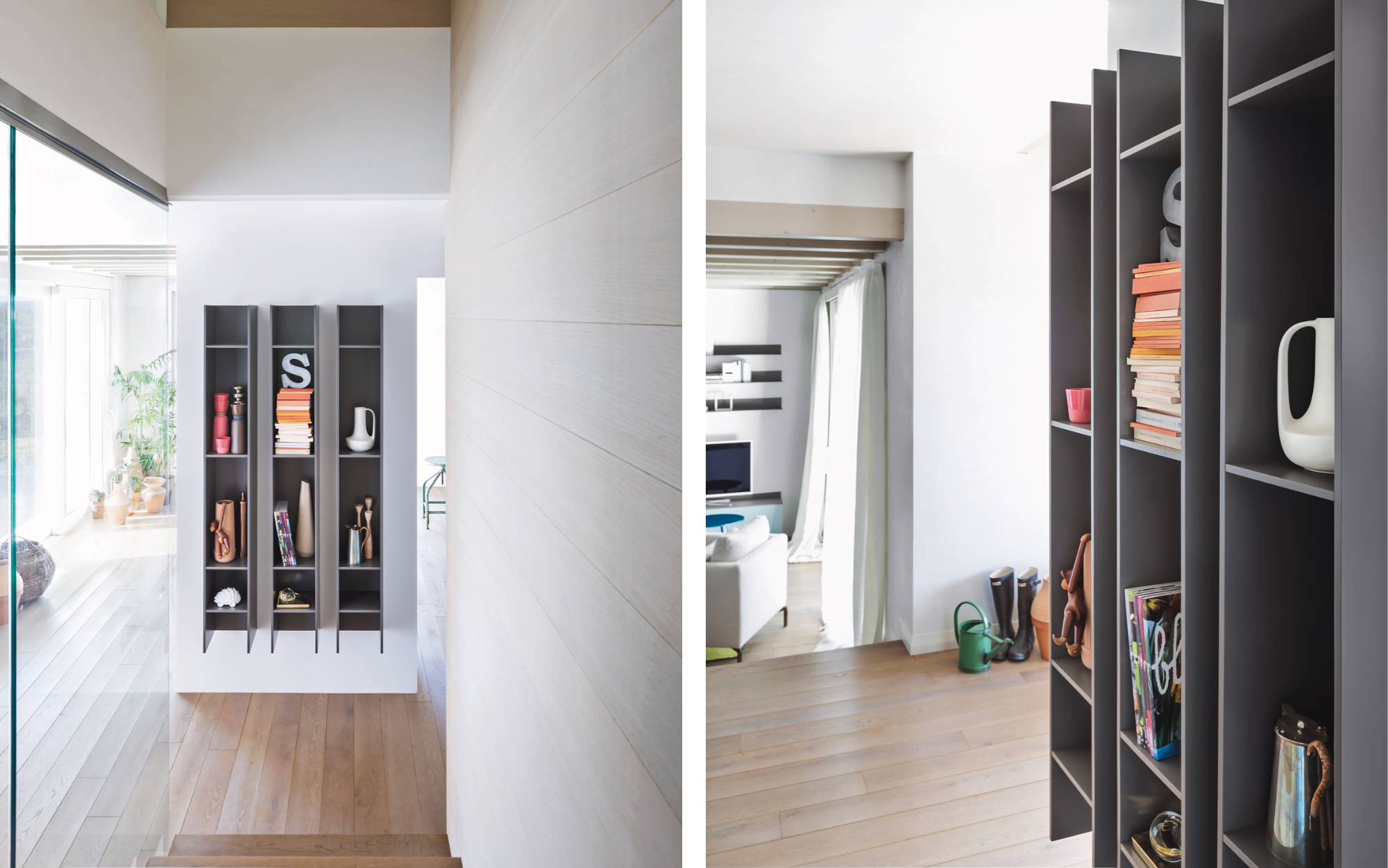 Wall 30 es una librería integral y versátil, construida sobre un concepto modular de soporte lateral. Su identidad se forja a través de tres dimensiones diferentes, sistemas de deslizamiento ingeniosos y elementos cerrados que en conjunto generan una estética contemporánea y holística, enriqueciendo tanto los espacios de convivencia como los dormitorios.