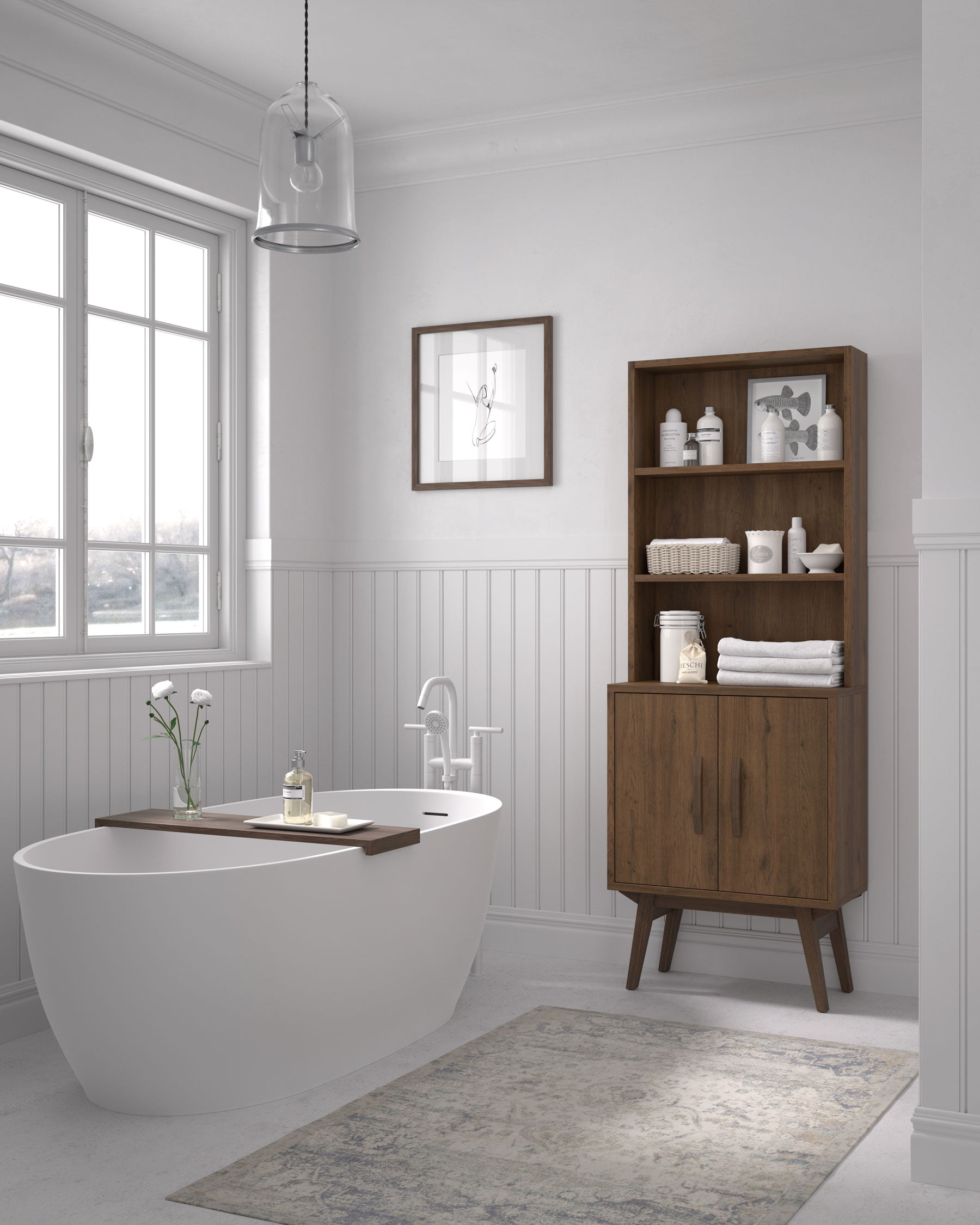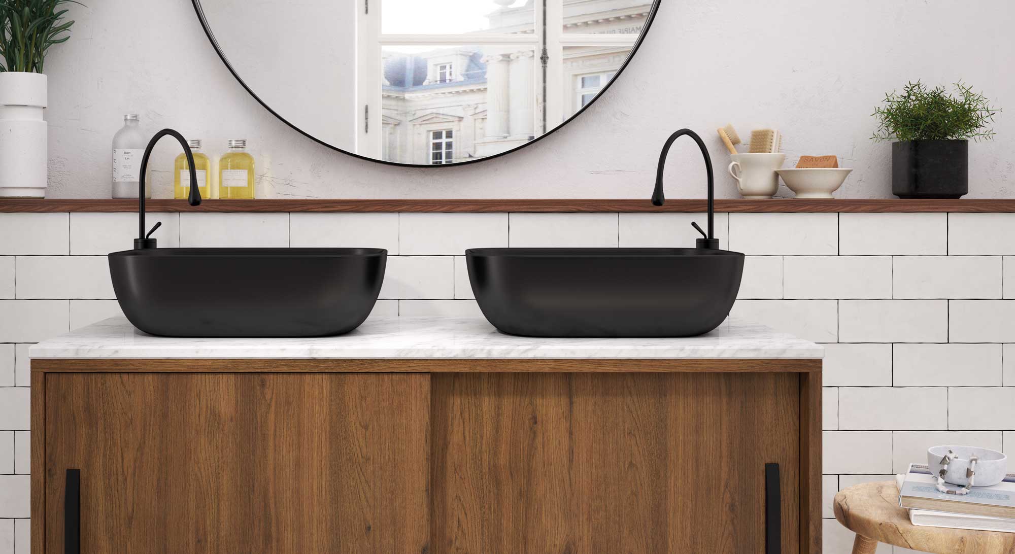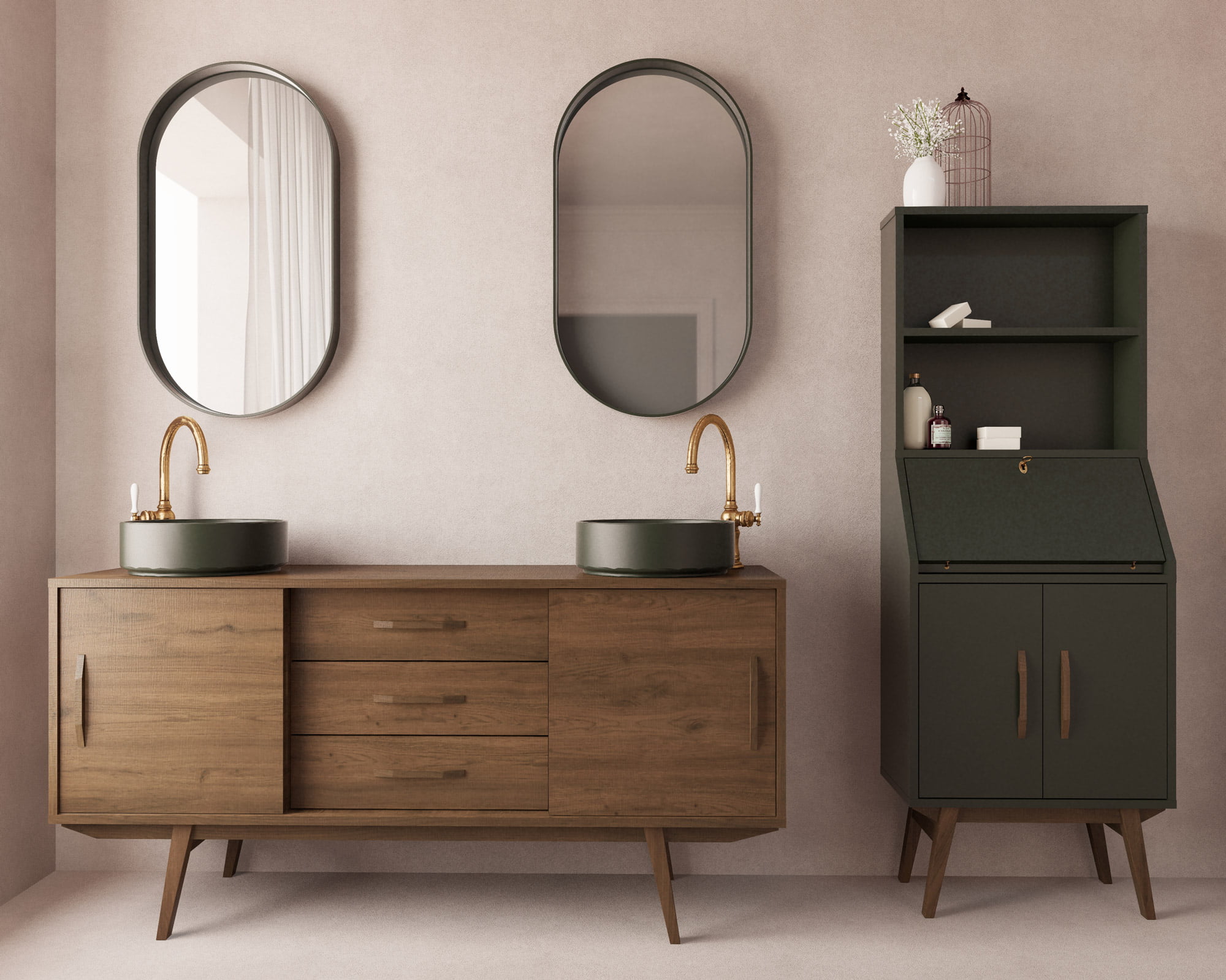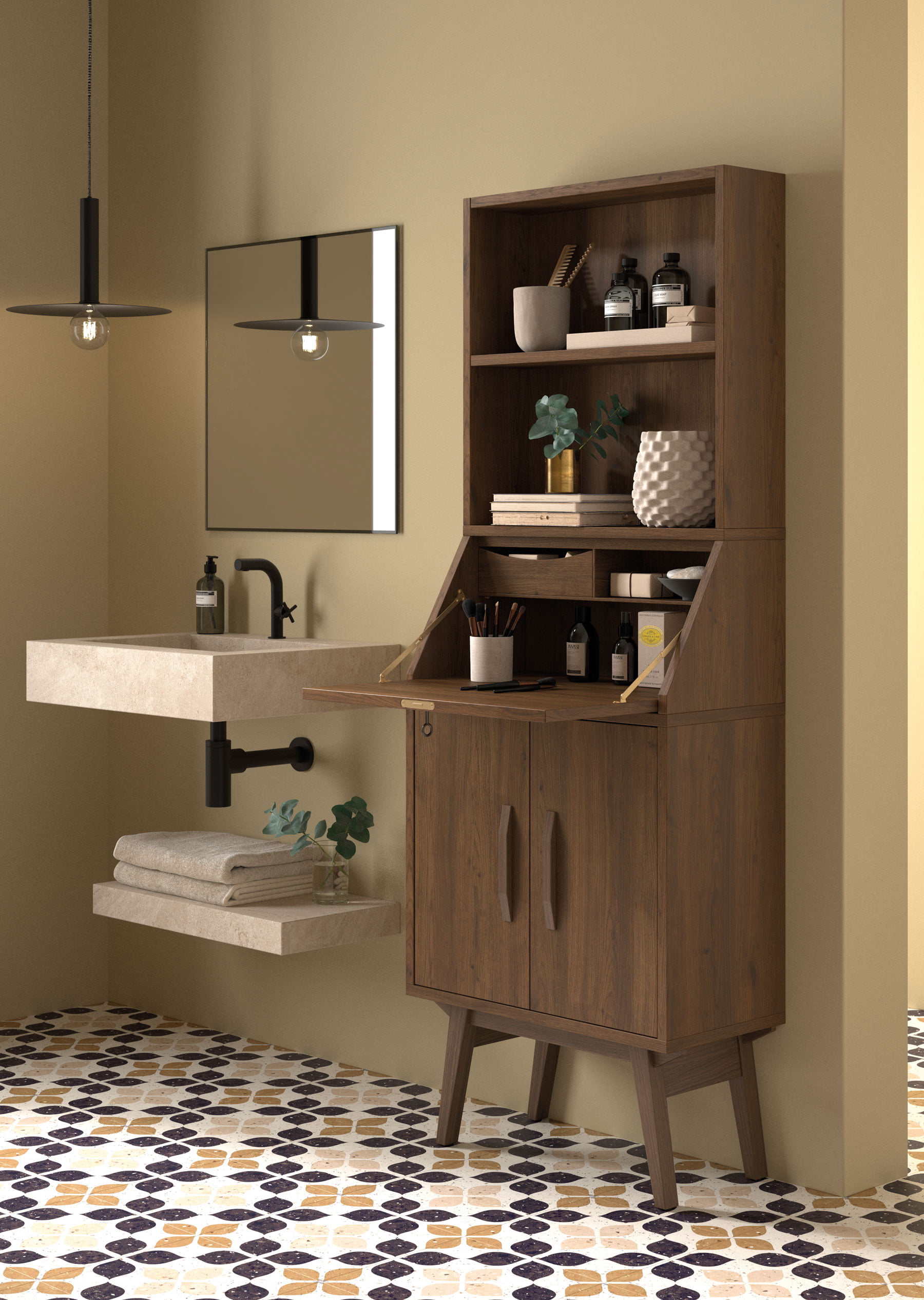 Una colección de muebles de baño que no parecen de baño inspirada en los años 50. Muebles de baño que respiran el estilo Midcentury. Un diseño que permanece actual a lo largo del tiempo. Líneas puras y racionales, de pasión por la geometría.