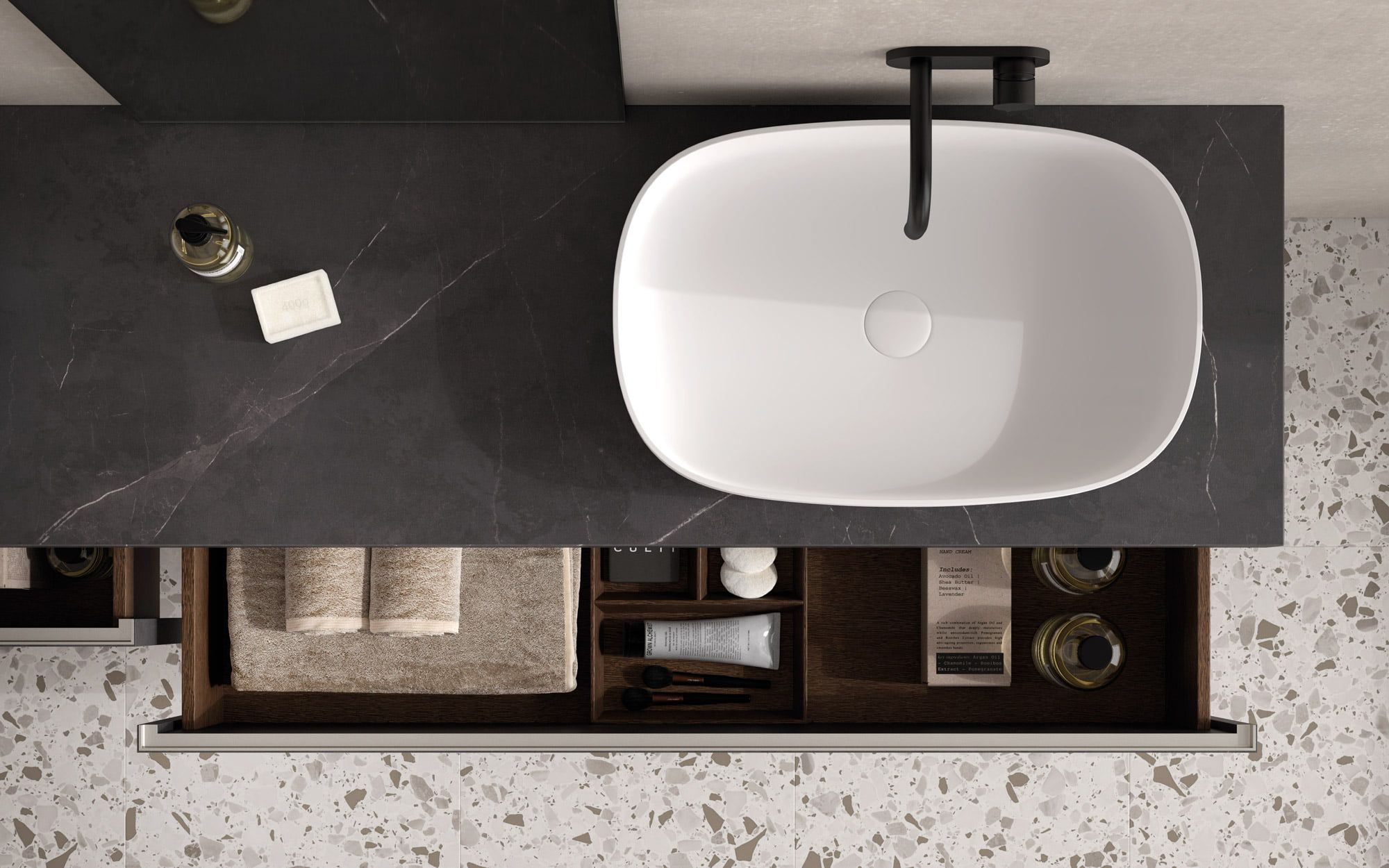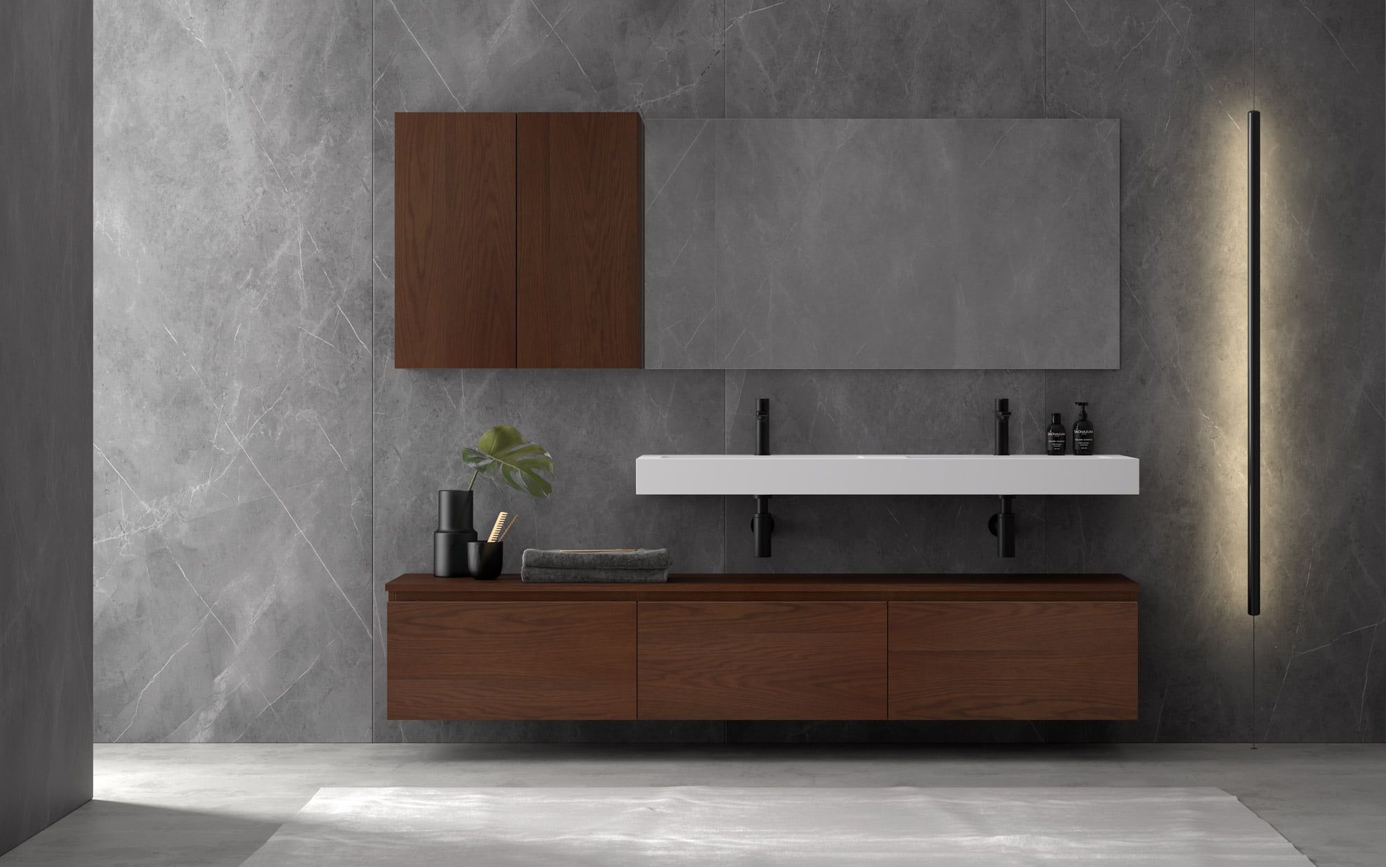 La colección de baño LEO es un programa versátil que ofrece muebles de baño modulares y compactos con una amplia gama de encimeras en mármol, porcelánicos o solid surface. Todos los conjuntos incluyen exquisitos distribuidores en los cajones. Además, se puede elegir entre acabados nobles como madera, laminados, lacas o la personalización con carta NCS. Cada conjunto es una solución personal.