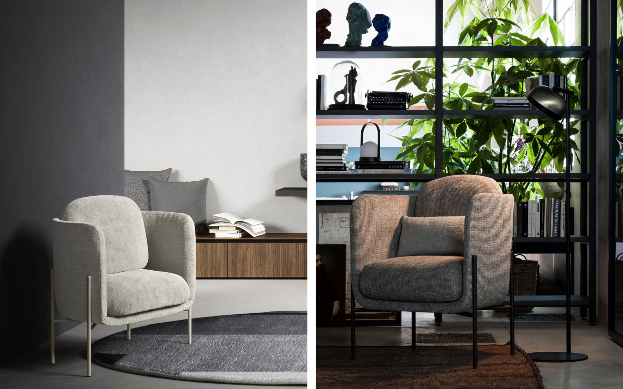 Fruto de la colaboración entre Giorgia Zanellato y Daniele Bortotto, Haiku se presenta como una butaca o poltrona de elegancia innata, explorando la interacción entre diversos materiales y acabados. La estructura envolvente y de líneas suaves del asiento se integra armoniosamente en un entramado metálico, añadiendo un toque gráfico a su carácter distintivo. Sin duda una de las mejores Poltronas de Novamobili.