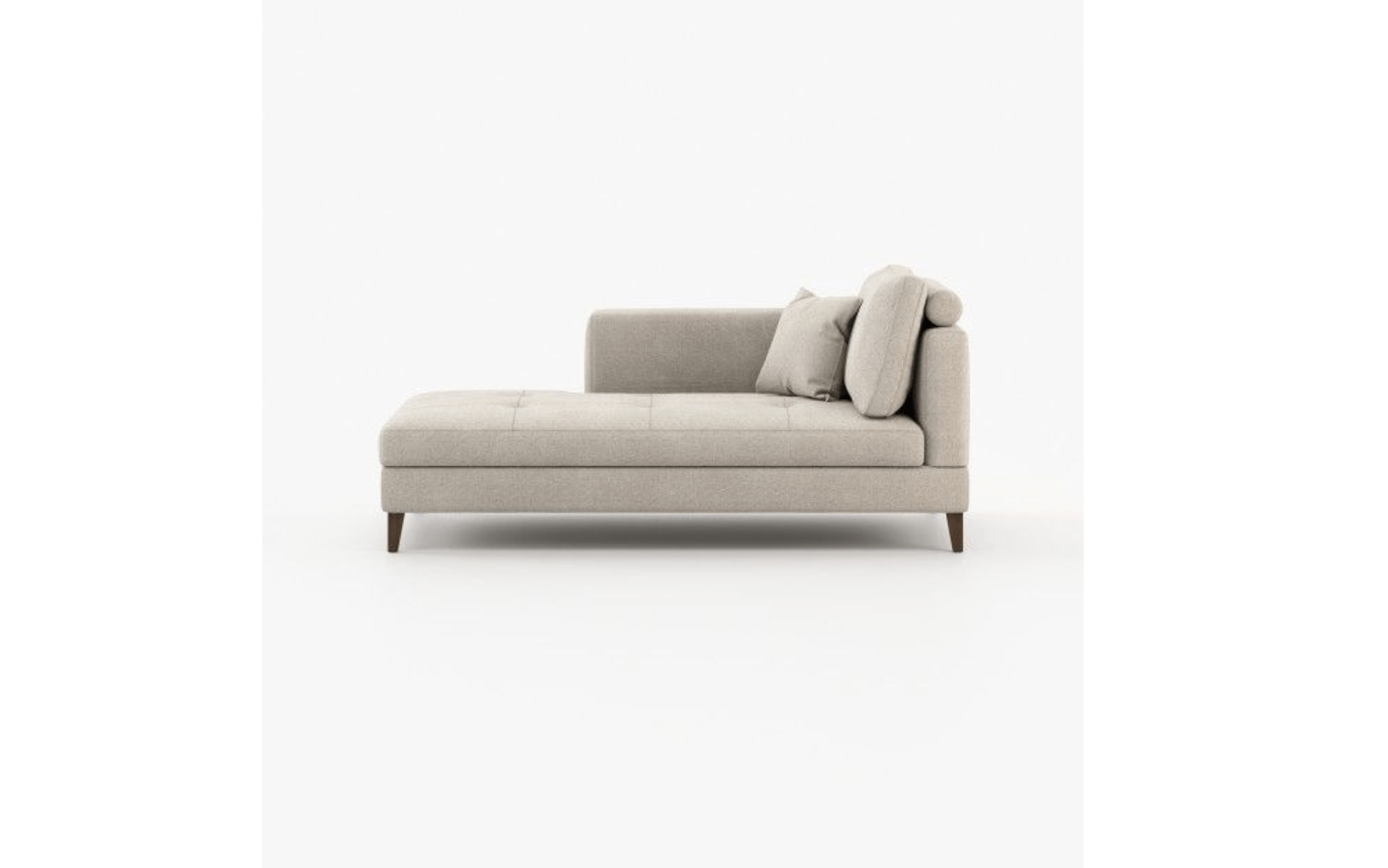 Una chaise longue elegantemente tapizada en tela de alta calidad o piel genuina, sostenida por patas de madera. Además, cuenta con un reposabrazos lateral que añade un toque de confort extra al ambiente de su sala de estar.